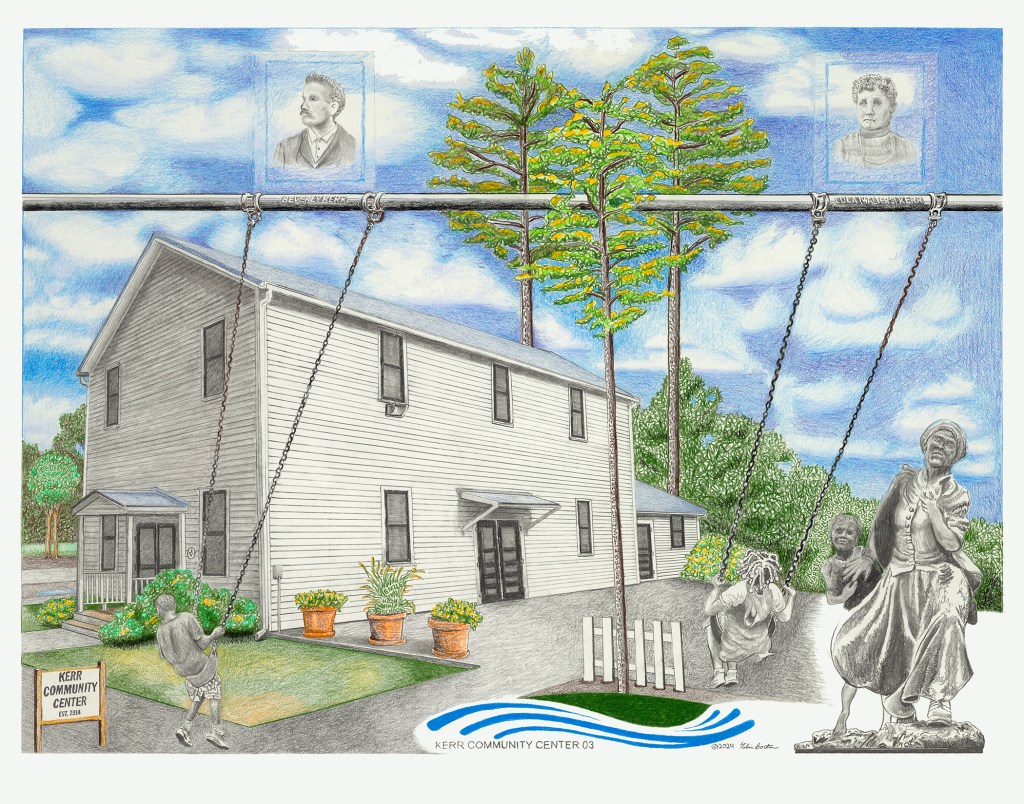 Derivative work: Kerr Community Center from kerrcommunitycenter_org;Kerr photos courtesy Bastrop County Historical Society; Harriet Tubman from allianceforTexasHistory_org – images_squarespace-cdn_com – Tubman+2; Kids on swings from Kerr Center Photo – Carol Lyons.