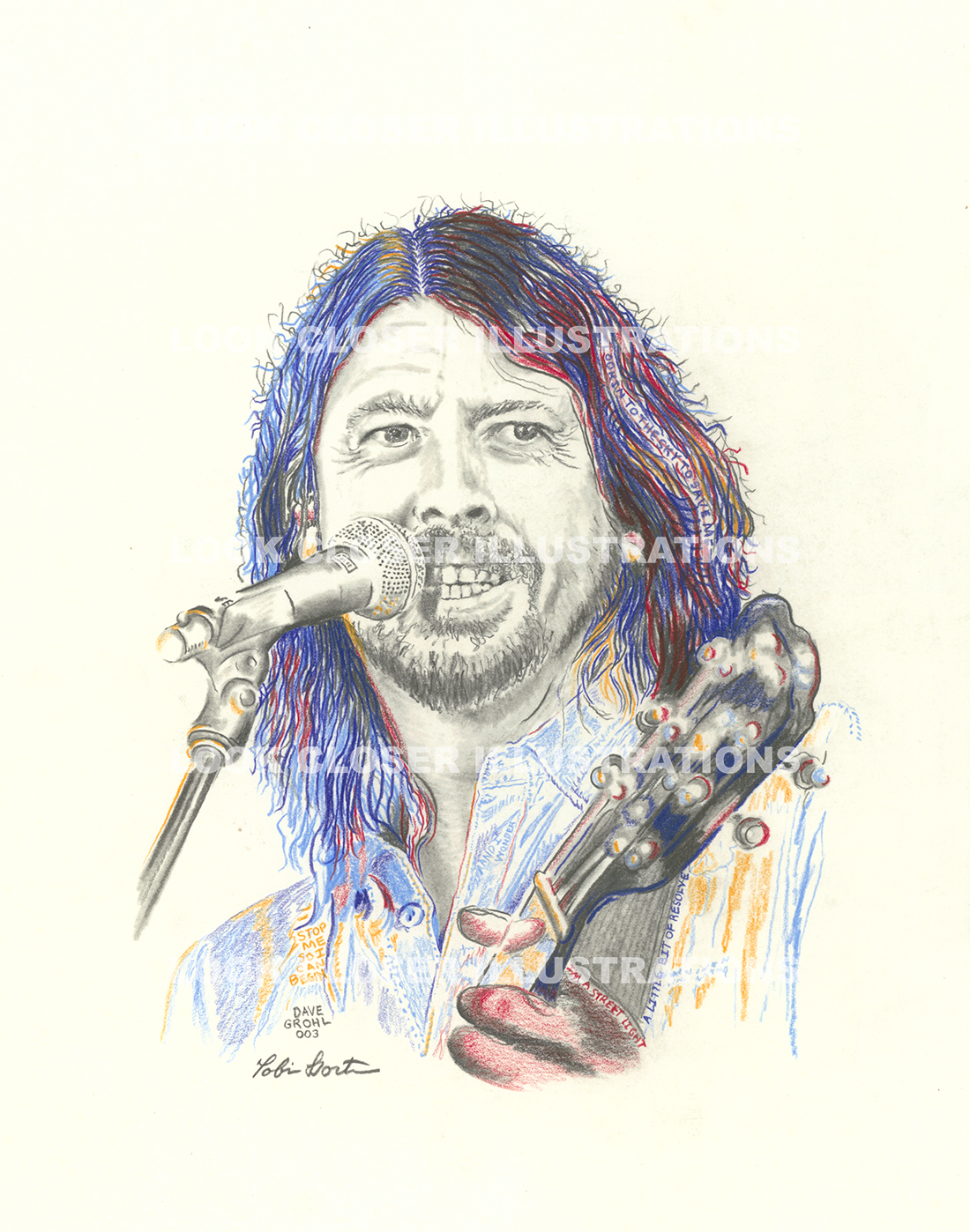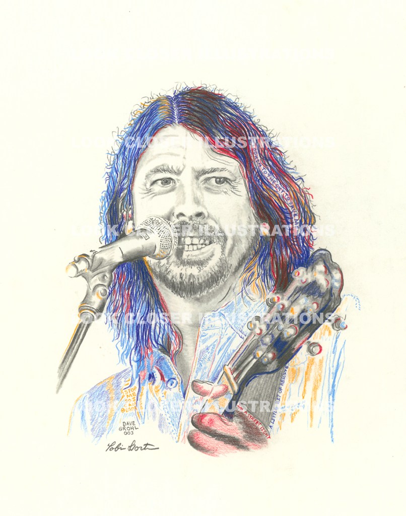 Each illustration is tied to a non-profit fund raiser. The first print of this Dave Grohl illustration was used to help with sponsorship of a softball team in Charlotte, North Carolina.