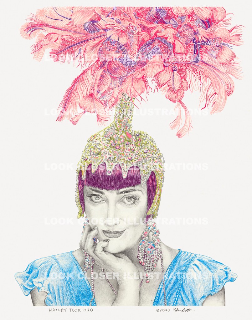 Digital Print on Archival Matte – Original illustration done with graphite and prisma colors: Pink and Blush Pink because Hailey’s music makes me blush; Silver for the glitter effect; Violet for depth and because it is a flower; Lime Peel because Hailey’s music is clean and as sharp as citrus; Magenta to bring the pink off the surface; and Dark Purple for the darkness of “Trouble in Mind” which she covers on her album, “Junk.”