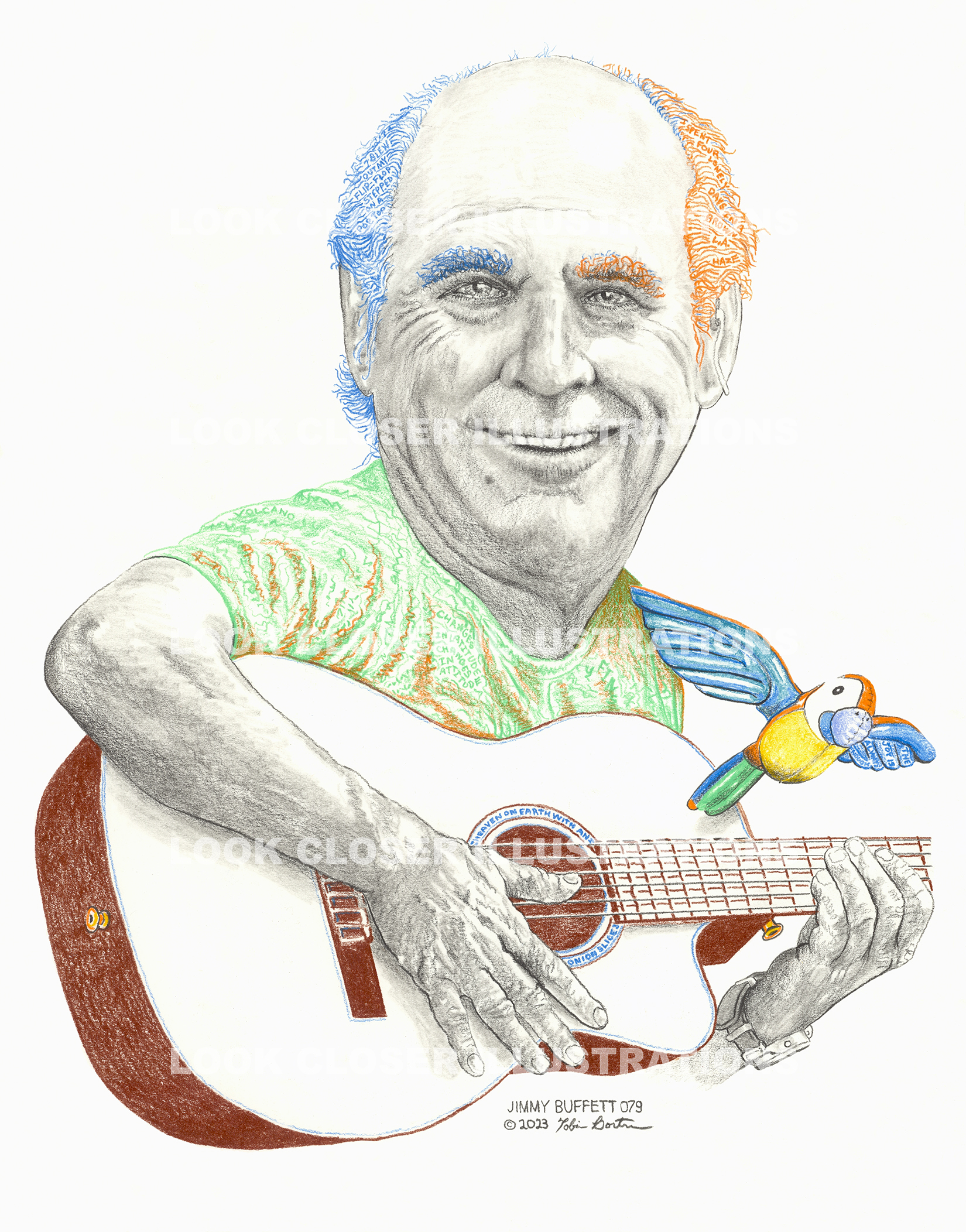 DERIVATIVE Work – photo credits: face from thefamouspeople_com – jimmy-buffett-1; guitar from counton2_com – i0_wp_com – Jimmy-Buffett; inflatable parrot from pinterest_com – i_pinimg_com – 64670f3b372e88230768aaf426dad1ee